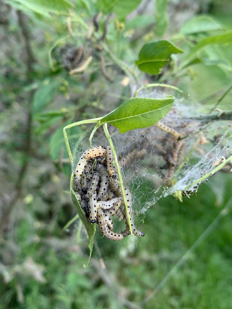 During a recent walk at Brixworth country park I loved seeing the Ermine moth caterpillars and their amazing webs coating the spindle trees.